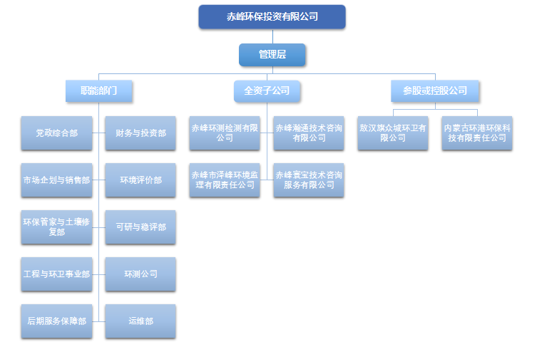 公司下设赤峰瀚通技术咨询有限公司、赤峰寰宝技术咨询服务有限公司、赤峰环测检测有限公司、赤峰市泽峰环境监理有限公司4家全资子公司,拥有敖汉众城环卫公司、内蒙古环港环保科技有限责任公司等2家控股参股公司。